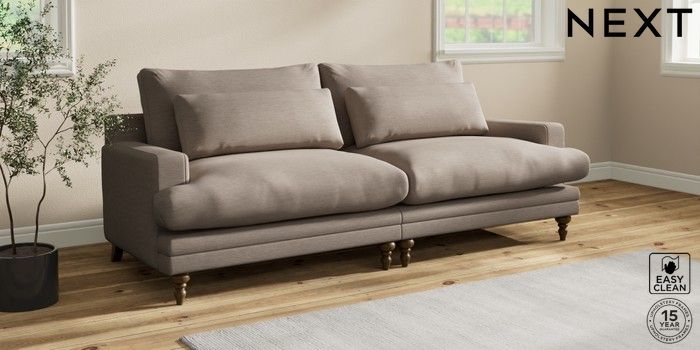 7.0.3 Buy Hutton Deep Relaxed Sit 4 Seater Sofa Fine Chenille Easy Clean Mid Taupe Brown Country Turned - Mid from the Next UK online shop Click here to use our accessible website
