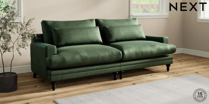 7.0.3 Buy Hutton Deep Relaxed Sit 4 Seater Sofa Luxe Chenille Dark Green Country Turned - Dark from the Next UK online shop Click here to use our accessible website