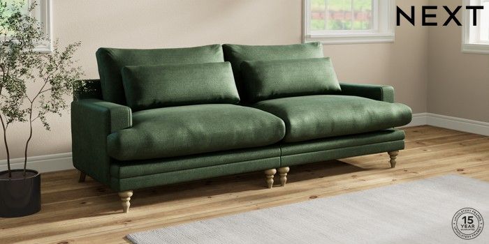 7.0.3 Buy Hutton Deep Relaxed Sit 4 Seater Sofa Luxe Chenille Dark Green Country Turned - Light from the Next UK online shop Click here to use our accessible website