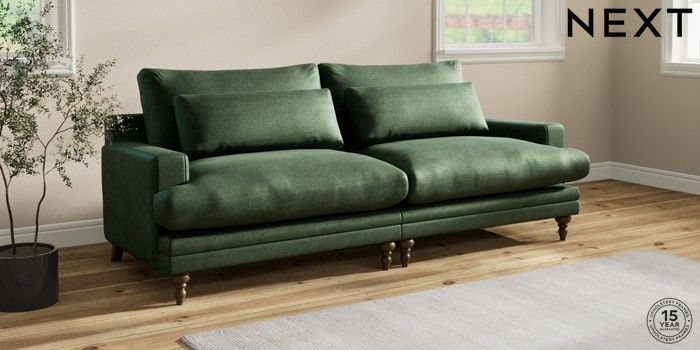 7.0.3 Buy Hutton Deep Relaxed Sit 4 Seater Sofa Luxe Chenille Dark Green Country Turned - Mid from the Next UK online shop Click here to use our accessible website