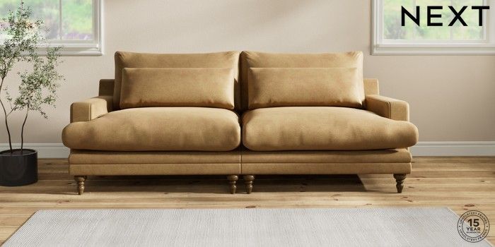 6.12.1 Buy Hutton Deep Relaxed Sit 4 Seater Sofa Luxe Chenille Honey Yellow Country Turned - Mid from the Next UK online shop Click here to use our accessible website
