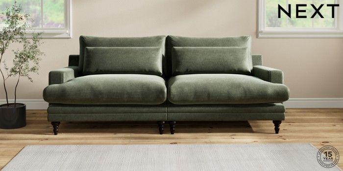 6.12.1 Buy Hutton Deep Relaxed Sit 4 Seater Sofa Luxe Chenille Mid Green Country Turned - Dark from the Next UK online shop Click here to use our accessible website