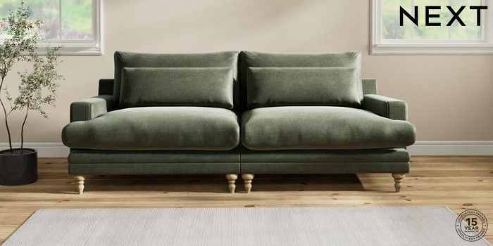 6.12.1 Buy Hutton Deep Relaxed Sit 4 Seater Sofa Luxe Chenille Mid Green Country Turned - Light from the Next UK online shop Click here to use our accessible website