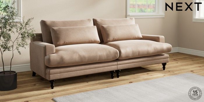 7.0.3 Buy Hutton Deep Relaxed Sit 4 Seater Sofa Luxe Chenille Mid Natural Country Turned - Dark from the Next UK online shop Click here to use our accessible website