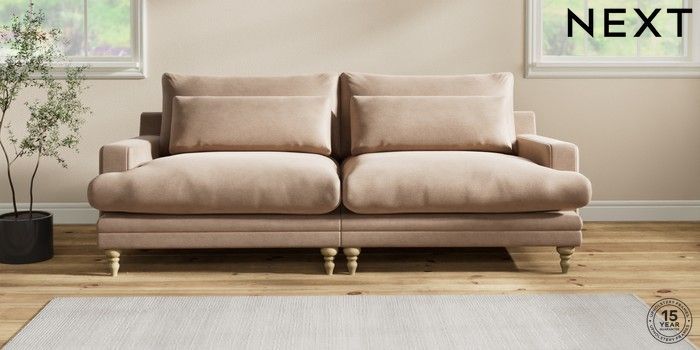 6.12.1 Buy Hutton Deep Relaxed Sit 4 Seater Sofa Luxe Chenille Mid Natural Country Turned - Light from the Next UK online shop Click here to use our accessible website