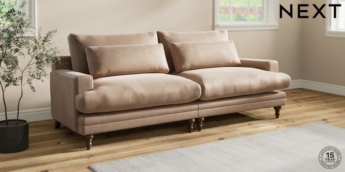7.0.3 Buy Hutton Deep Relaxed Sit 4 Seater Sofa Luxe Chenille Mid Natural Country Turned - Mid from the Next UK online shop Click here to use our accessible website