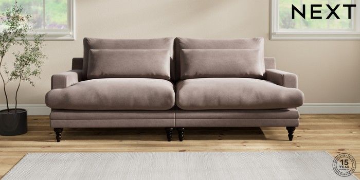 6.12.1 Buy Hutton Deep Relaxed Sit 4 Seater Sofa Luxe Chenille Mink Brown Country Turned - Dark from the Next UK online shop Click here to use our accessible website