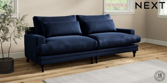 7.0.3 Buy Hutton Deep Relaxed Sit 4 Seater Sofa Luxe Chenille Navy Blue Country Turned - Dark from the Next UK online shop Click here to use our accessible website