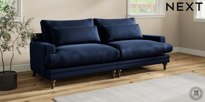7.0.3 Buy Hutton Deep Relaxed Sit 4 Seater Sofa Luxe Chenille Navy Blue Country Turned - Mid from the Next UK online shop Click here to use our accessible website