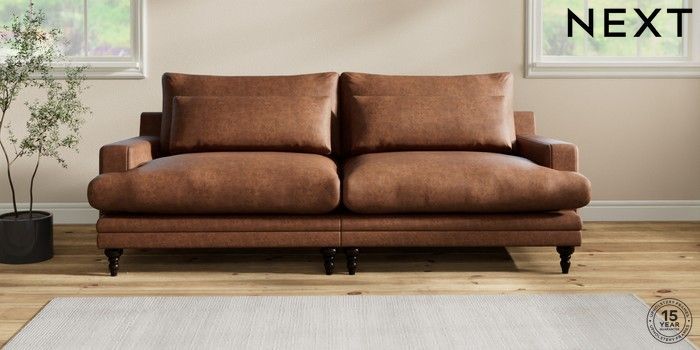 6.12.1 Buy Hutton Deep Relaxed Sit 4 Seater Sofa Monza Faux Leather Easy Clean Chestnut Brown Country Turned - Dark from the Next UK online shop Click here to use our accessible website