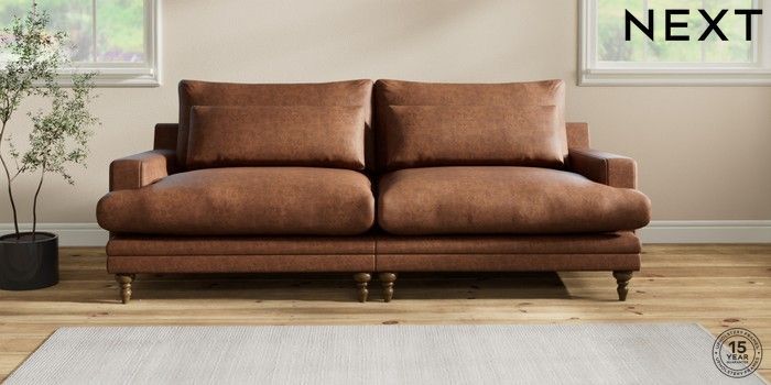 6.12.1 Buy Hutton Deep Relaxed Sit 4 Seater Sofa Monza Faux Leather Easy Clean Chestnut Brown Country Turned - Mid from the Next UK online shop Click here to use our accessible website
