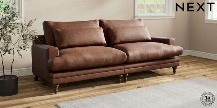 7.0.3 Buy Hutton Deep Relaxed Sit 4 Seater Sofa Monza Faux Leather Easy Clean Chestnut Brown Country Turned - Mid from the Next UK online shop Click here to use our accessible website