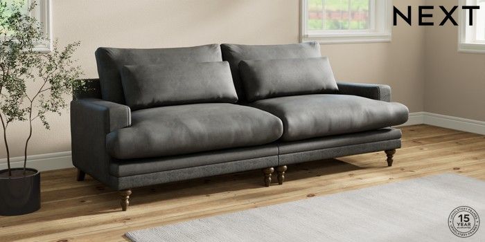 7.0.3 Buy Hutton Deep Relaxed Sit 4 Seater Sofa Monza Faux Leather Easy Clean Dark Grey Country Turned - Mid from the Next UK online shop Click here to use our accessible website