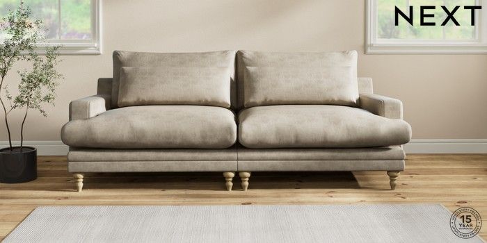 6.12.1 Buy Hutton Deep Relaxed Sit 4 Seater Sofa Monza Faux Leather Easy Clean Mink Brown Country Turned - Light from the Next UK online shop Click here to use our accessible website