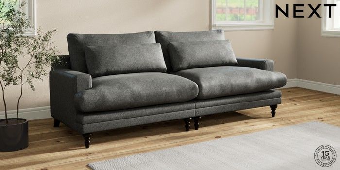 7.0.3 Buy Hutton Deep Relaxed Sit 4 Seater Sofa Plush Chenille Dark Grey Country Turned - Dark from the Next UK online shop Click here to use our accessible website