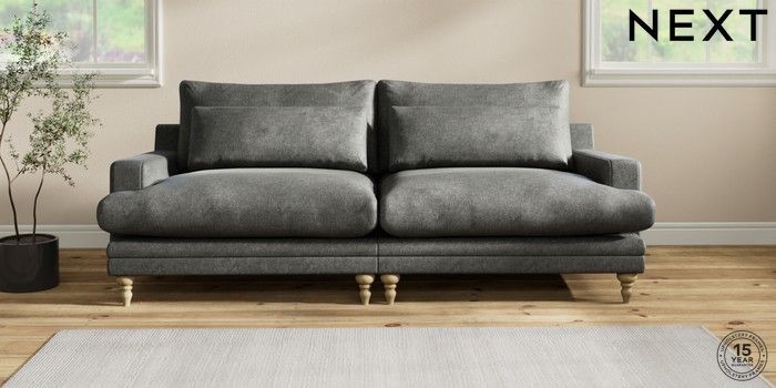 6.12.1 Buy Hutton Deep Relaxed Sit 4 Seater Sofa Plush Chenille Dark Grey Country Turned - Light from the Next UK online shop Click here to use our accessible website
