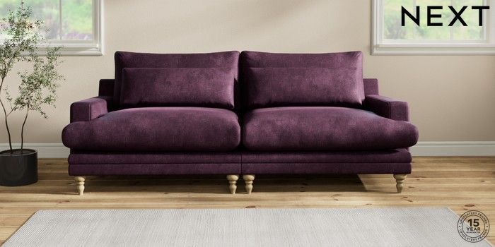 6.12.1 Buy Hutton Deep Relaxed Sit 4 Seater Sofa Plush Chenille Dark Plum Purple Country Turned - Light from the Next UK online shop Click here to use our accessible website