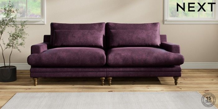 6.12.1 Buy Hutton Deep Relaxed Sit 4 Seater Sofa Plush Chenille Dark Plum Purple Country Turned - Mid from the Next UK online shop Click here to use our accessible website