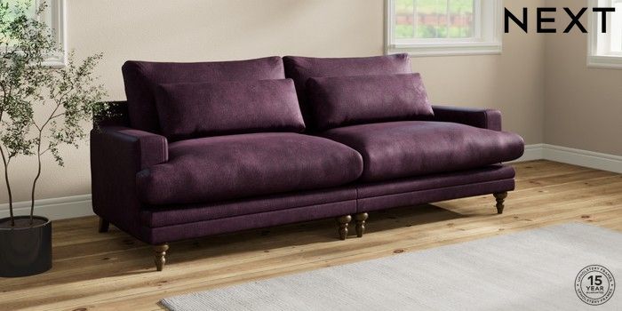 7.0.3 Buy Hutton Deep Relaxed Sit 4 Seater Sofa Plush Chenille Dark Plum Purple Country Turned - Mid from the Next UK online shop Click here to use our accessible website