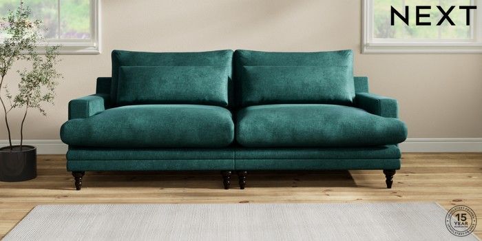 6.12.1 Buy Hutton Deep Relaxed Sit 4 Seater Sofa Plush Chenille Dark Teal Green Country Turned - Dark from the Next UK online shop Click here to use our accessible website