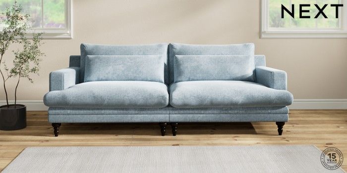 7.2.6 Buy Hutton Deep Relaxed Sit 4 Seater Sofa Plush Chenille Light Blue Country Turned - Dark from the Next UK online shop Click here to use our accessible website