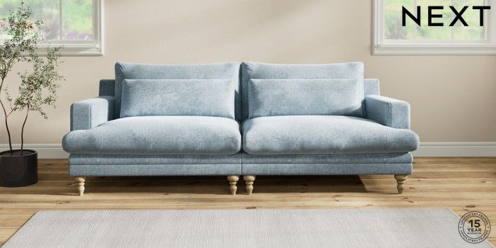 7.2.6 Buy Hutton Deep Relaxed Sit 4 Seater Sofa Plush Chenille Light Blue Country Turned - Light from the Next UK online shop Click here to use our accessible website