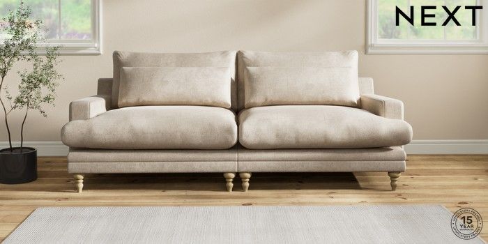 6.12.1 Buy Hutton Deep Relaxed Sit 4 Seater Sofa Plush Chenille Light Natural Country Turned - Light from the Next UK online shop Click here to use our accessible website