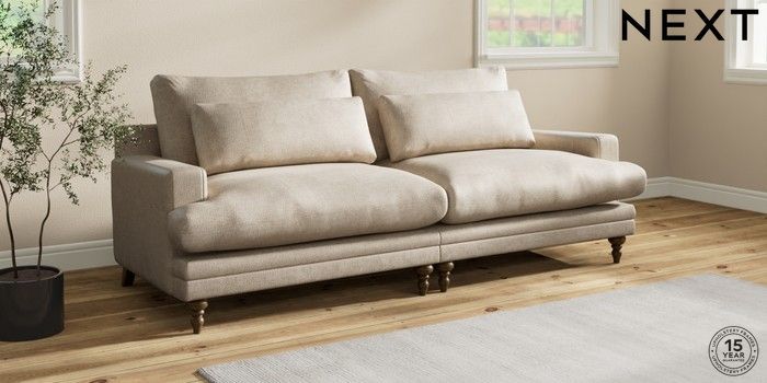 7.0.3 Buy Hutton Deep Relaxed Sit 4 Seater Sofa Plush Chenille Light Natural Country Turned - Mid from the Next UK online shop Click here to use our accessible website