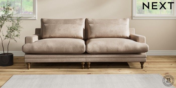 6.12.1 Buy Hutton Deep Relaxed Sit 4 Seater Sofa Plush Chenille Mid Natural Country Turned - Mid from the Next UK online shop Click here to use our accessible website