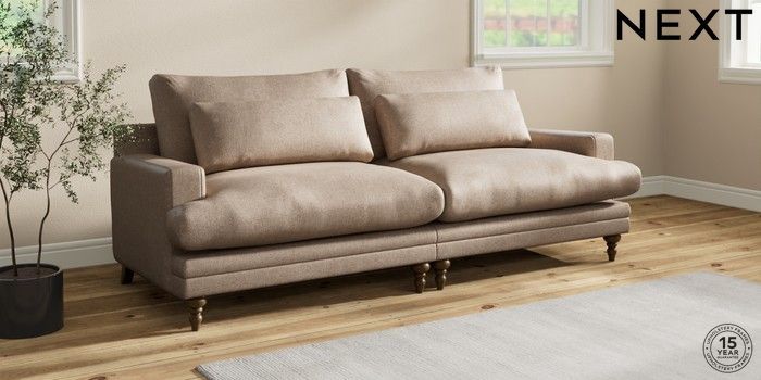 7.0.3 Buy Hutton Deep Relaxed Sit 4 Seater Sofa Plush Chenille Mid Natural Country Turned - Mid from the Next UK online shop Click here to use our accessible website