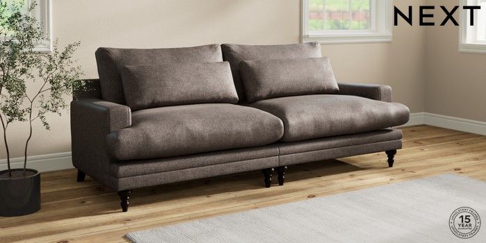 7.0.3 Buy Hutton Deep Relaxed Sit 4 Seater Sofa Plush Chenille Mink Brown Country Turned - Dark from the Next UK online shop Click here to use our accessible website