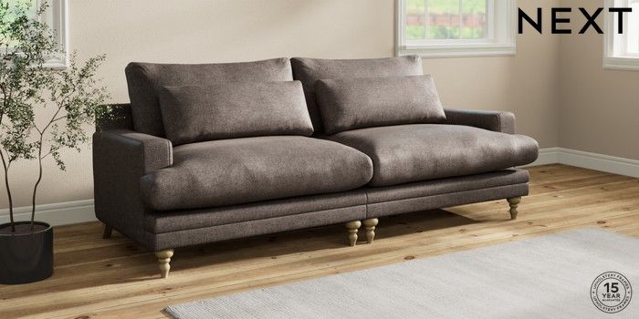 7.0.3 Buy Hutton Deep Relaxed Sit 4 Seater Sofa Plush Chenille Mink Brown Country Turned - Light from the Next UK online shop Click here to use our accessible website