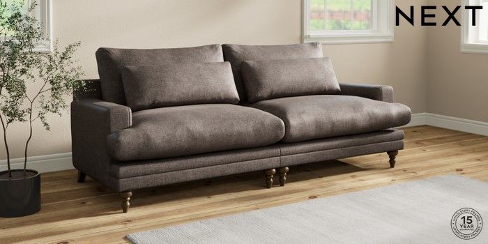 7.0.3 Buy Hutton Deep Relaxed Sit 4 Seater Sofa Plush Chenille Mink Brown Country Turned - Mid from the Next UK online shop Click here to use our accessible website