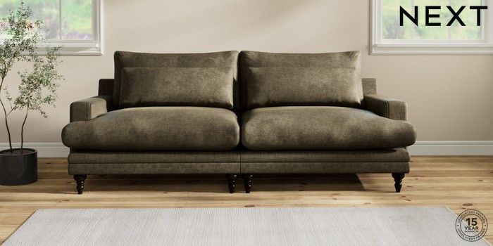 6.12.1 Buy Hutton Deep Relaxed Sit 4 Seater Sofa Plush Chenille Moss Green Country Turned - Dark from the Next UK online shop Click here to use our accessible website