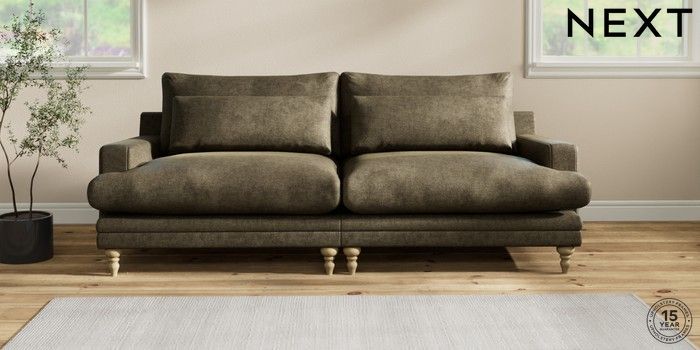 6.12.1 Buy Hutton Deep Relaxed Sit 4 Seater Sofa Plush Chenille Moss Green Country Turned - Light from the Next UK online shop Click here to use our accessible website
