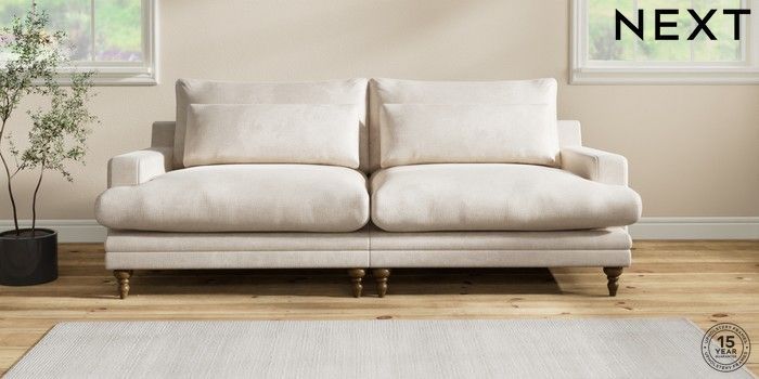 6.12.1 Buy Hutton Deep Relaxed Sit 4 Seater Sofa Plush Chenille Oyster Country Turned - Mid from the Next UK online shop Click here to use our accessible website