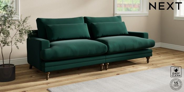 7.0.3 Buy Hutton Deep Relaxed Sit 4 Seater Sofa Plush Velvet Easy Clean Bottle Green Country Turned - Mid from the Next UK online shop Click here to use our accessible website