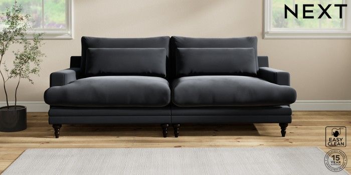 6.12.1 Buy Hutton Deep Relaxed Sit 4 Seater Sofa Plush Velvet Easy Clean Charcoal Grey Country Turned - Dark from the Next UK online shop Click here to use our accessible website