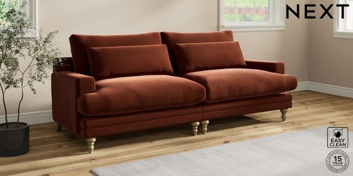 7.0.3 Buy Hutton Deep Relaxed Sit 4 Seater Sofa Plush Velvet Easy Clean Ginger Orange Country Turned - Light from the Next UK online shop Click here to use our accessible website