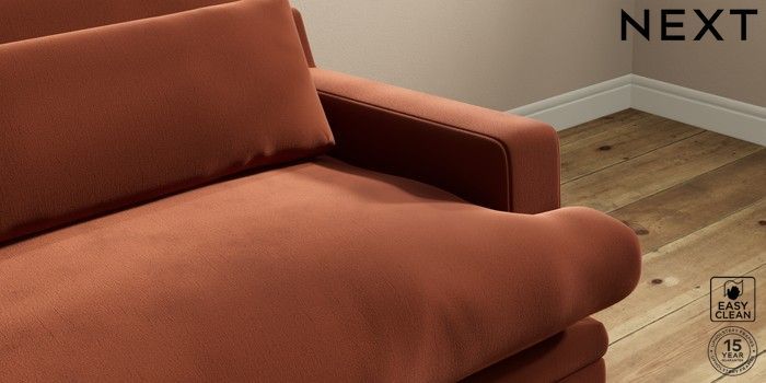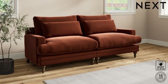 7.0.3 Buy Hutton Deep Relaxed Sit 4 Seater Sofa Plush Velvet Easy Clean Ginger Orange Country Turned - Mid from the Next UK online shop Click here to use our accessible website
