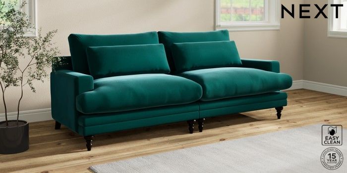 7.0.3 Buy Hutton Deep Relaxed Sit 4 Seater Sofa Plush Velvet Easy Clean Juniper Green Country Turned - Dark from the Next UK online shop Click here to use our accessible website