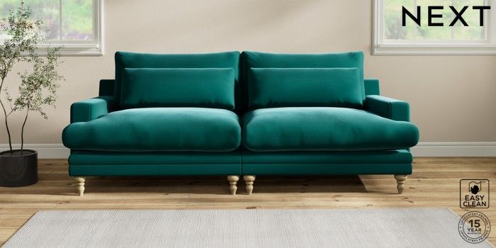 6.12.1 Buy Hutton Deep Relaxed Sit 4 Seater Sofa Plush Velvet Easy Clean Juniper Green Country Turned - Light from the Next UK online shop Click here to use our accessible website