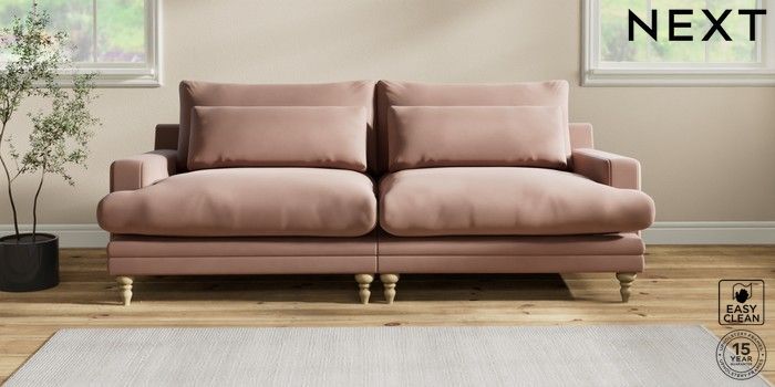 6.12.1 Buy Hutton Deep Relaxed Sit 4 Seater Sofa Plush Velvet Easy Clean Mid Natural Country Turned - Light from the Next UK online shop Click here to use our accessible website