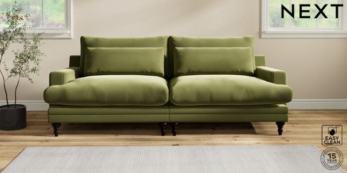 6.12.1 Buy Hutton Deep Relaxed Sit 4 Seater Sofa Plush Velvet Easy Clean Mid Olive Green Country Turned - Dark from the Next UK online shop Click here to use our accessible website