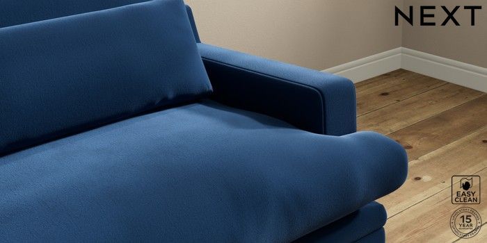 7.0.3 Buy Hutton Deep Relaxed Sit 4 Seater Sofa Plush Velvet Easy Clean Navy Blue Country Turned - Mid from the Next UK online shop Click here to use our accessible website