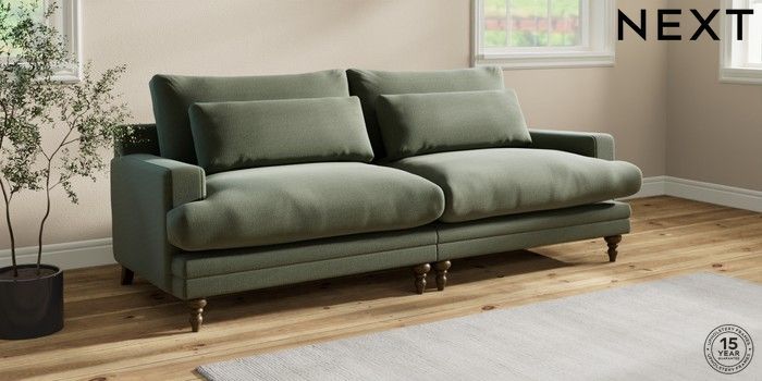 7.0.3 Buy Hutton Deep Relaxed Sit 4 Seater Sofa Relaxed Linen Look Dark Green Country Turned - Mid from the Next UK online shop Click here to use our accessible website