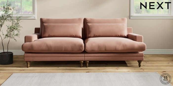 6.12.1 Buy Hutton Deep Relaxed Sit 4 Seater Sofa Relaxed Linen Look Light Rust Brown Country Turned - Mid from the Next UK online shop Click here to use our accessible website