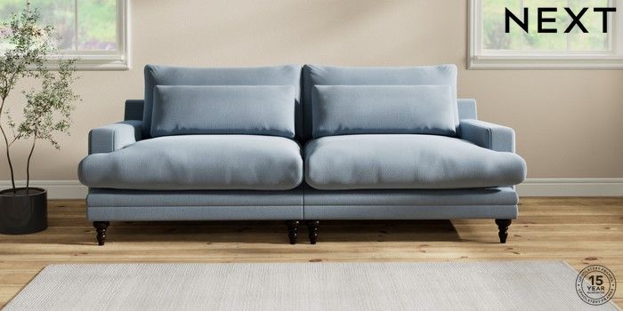 6.12.1 Buy Hutton Deep Relaxed Sit 4 Seater Sofa Relaxed Linen Look Mid Blue Country Turned - Dark from the Next UK online shop Click here to use our accessible website