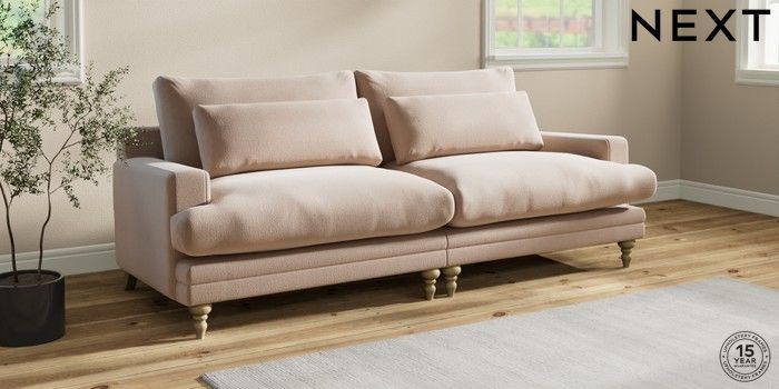 7.0.3 Buy Hutton Deep Relaxed Sit 4 Seater Sofa Relaxed Linen Look Mid Natural Country Turned - Light from the Next UK online shop Click here to use our accessible website