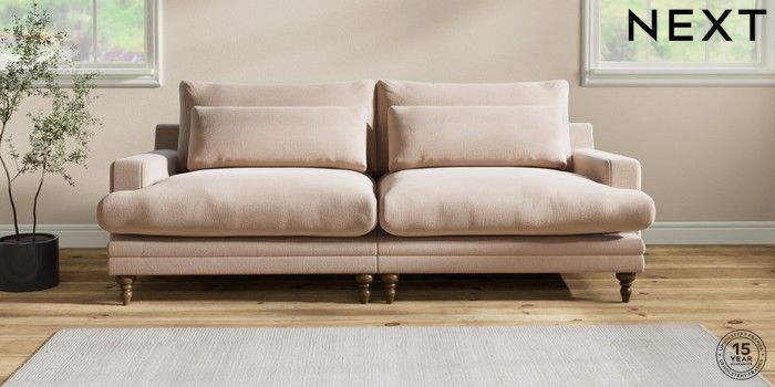 6.12.1 Buy Hutton Deep Relaxed Sit 4 Seater Sofa Relaxed Linen Look Mid Natural Country Turned - Mid from the Next UK online shop Click here to use our accessible website